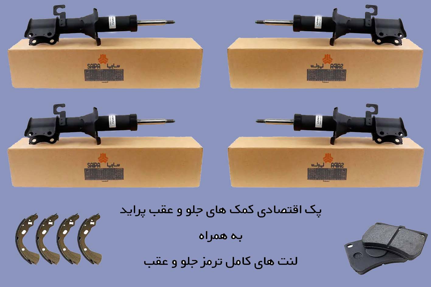 ناموجودپک شماره 2 شامل یک جفت کمک جلو ، یک جفت کمک عقب پراید به همراه یک دست لنت جلو و لنت عقب پراید